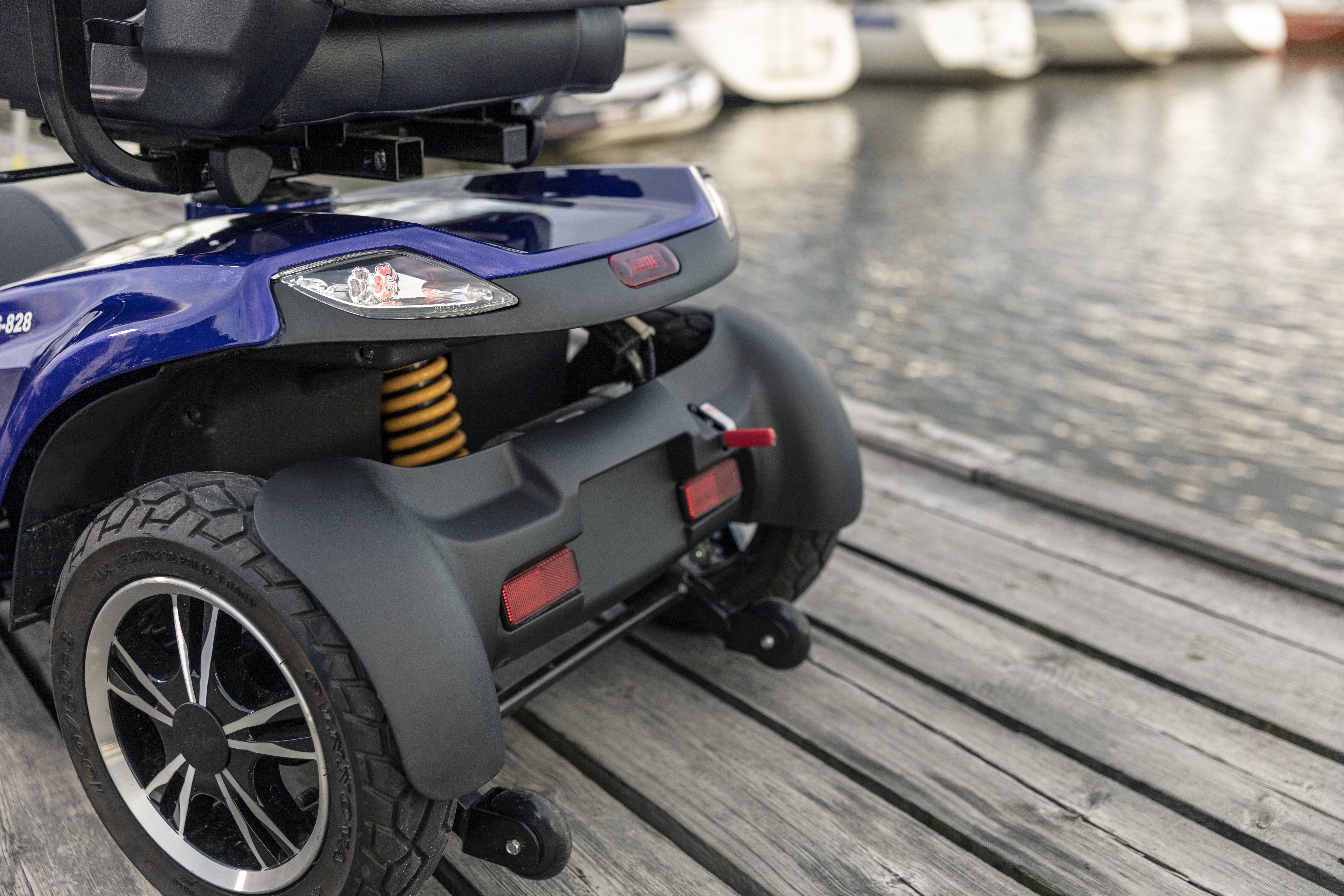 Bak finns ett fäste för tillbehör och i fram sitter en löstagbar varukorg. Hela maskinen är givetvis CE-märkt och uppfyller alla säkerhetskrav. Den medföljande intelligenta batteriladdaren kan man låta sitta i 220 voltsuttaget vid laddning utan att riskera att batteriet överladdas eller skadas. Det helfjädrade komfortchassiet, den mjuka stolsdynan med flera inställningsmöjligheter,